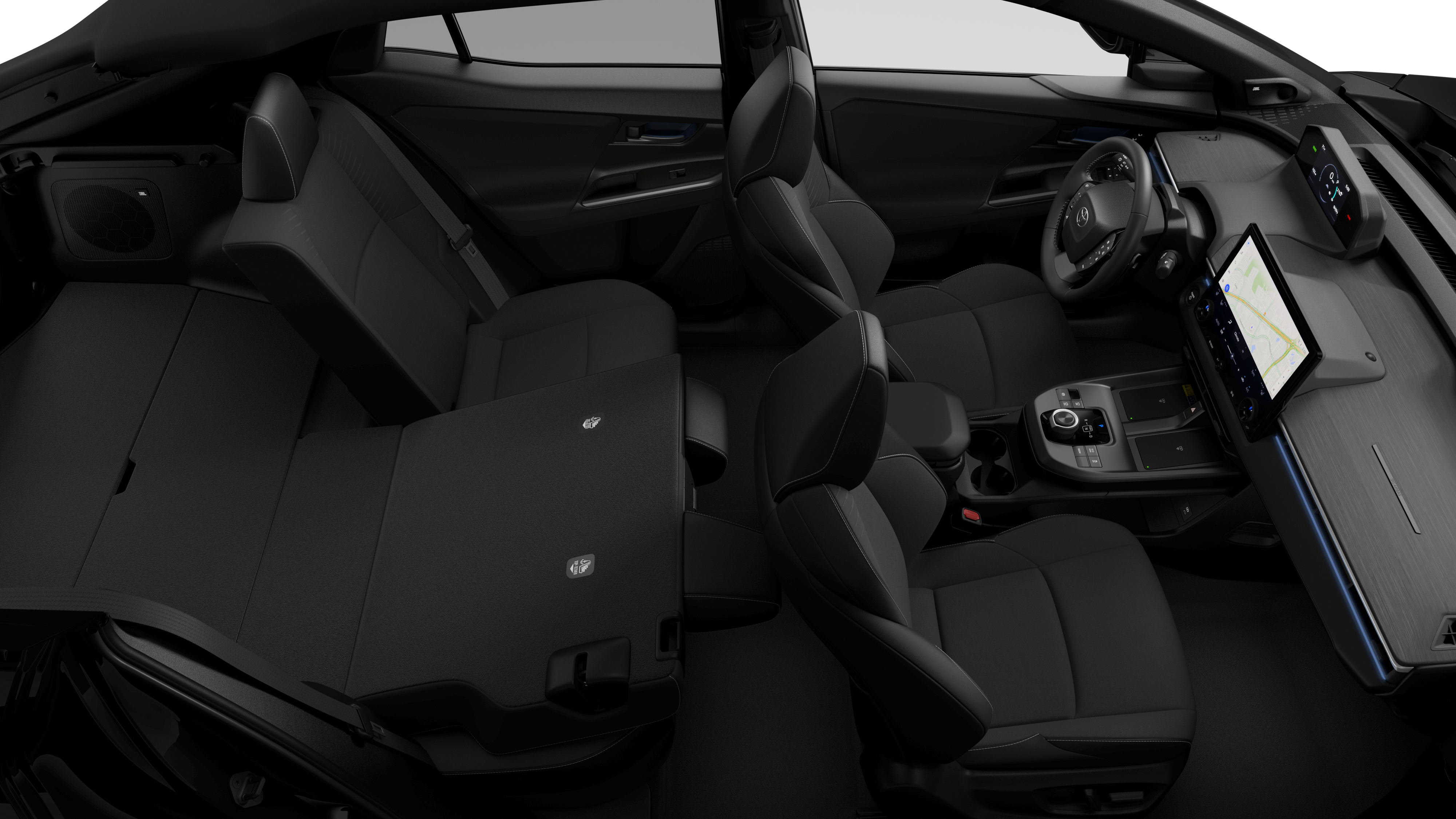 - 60/40 split, reclining fold-flat rear seats with center armrest and cup holders